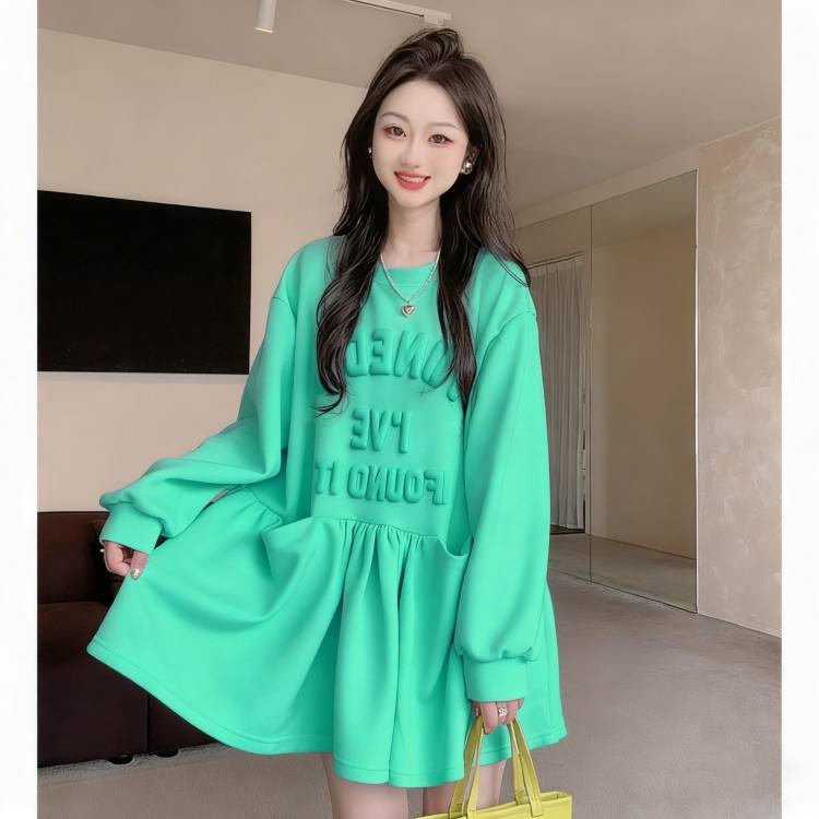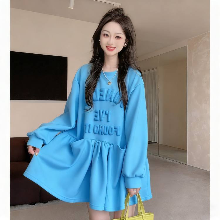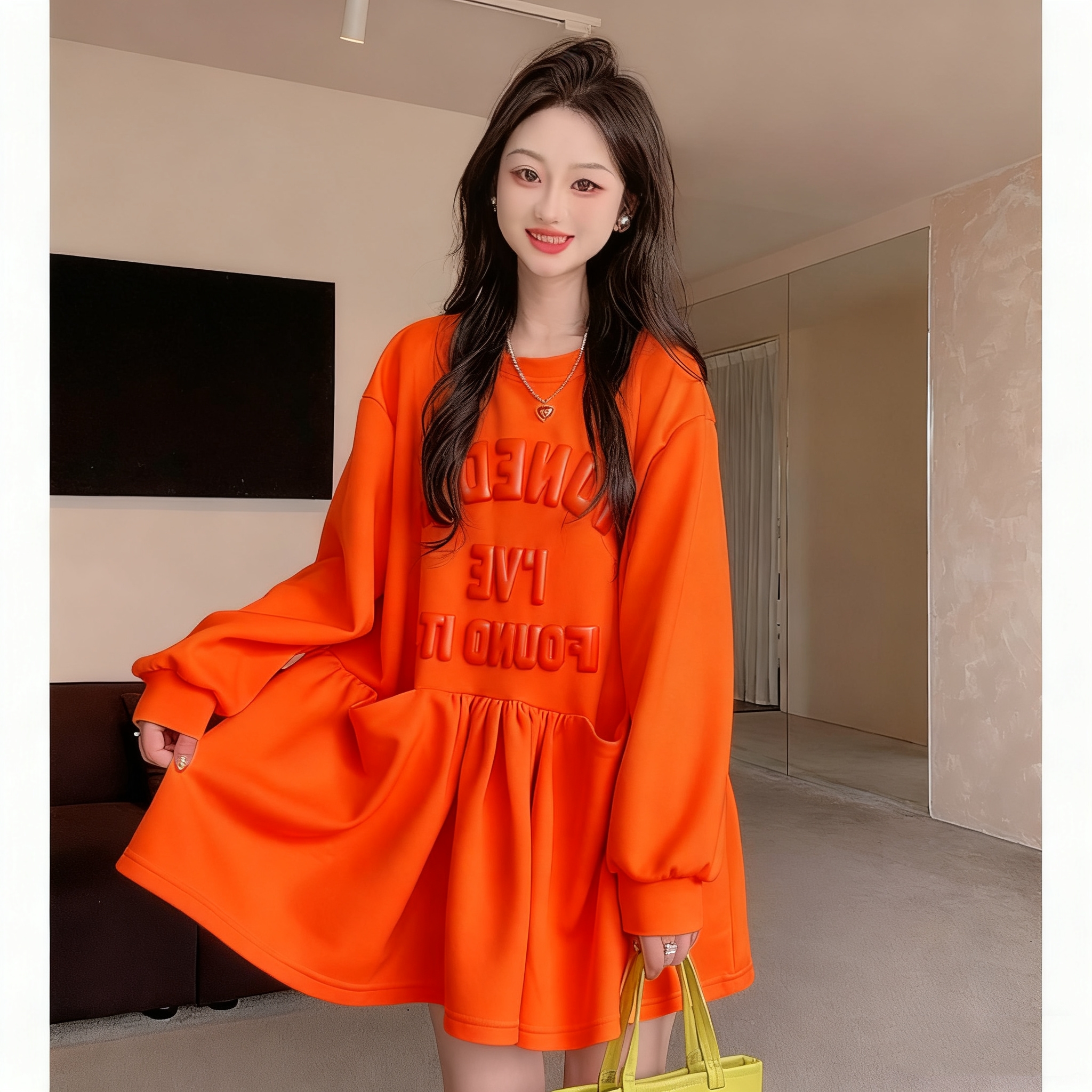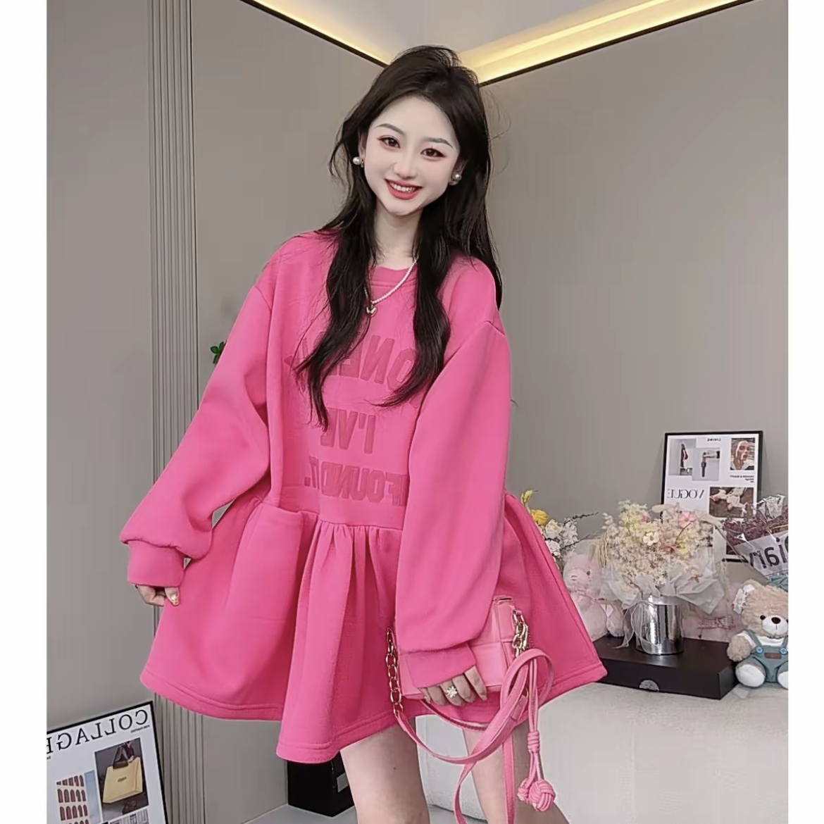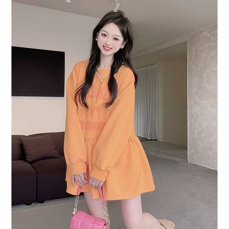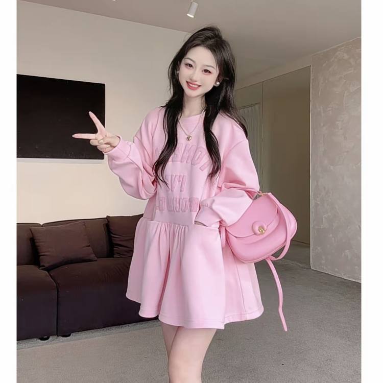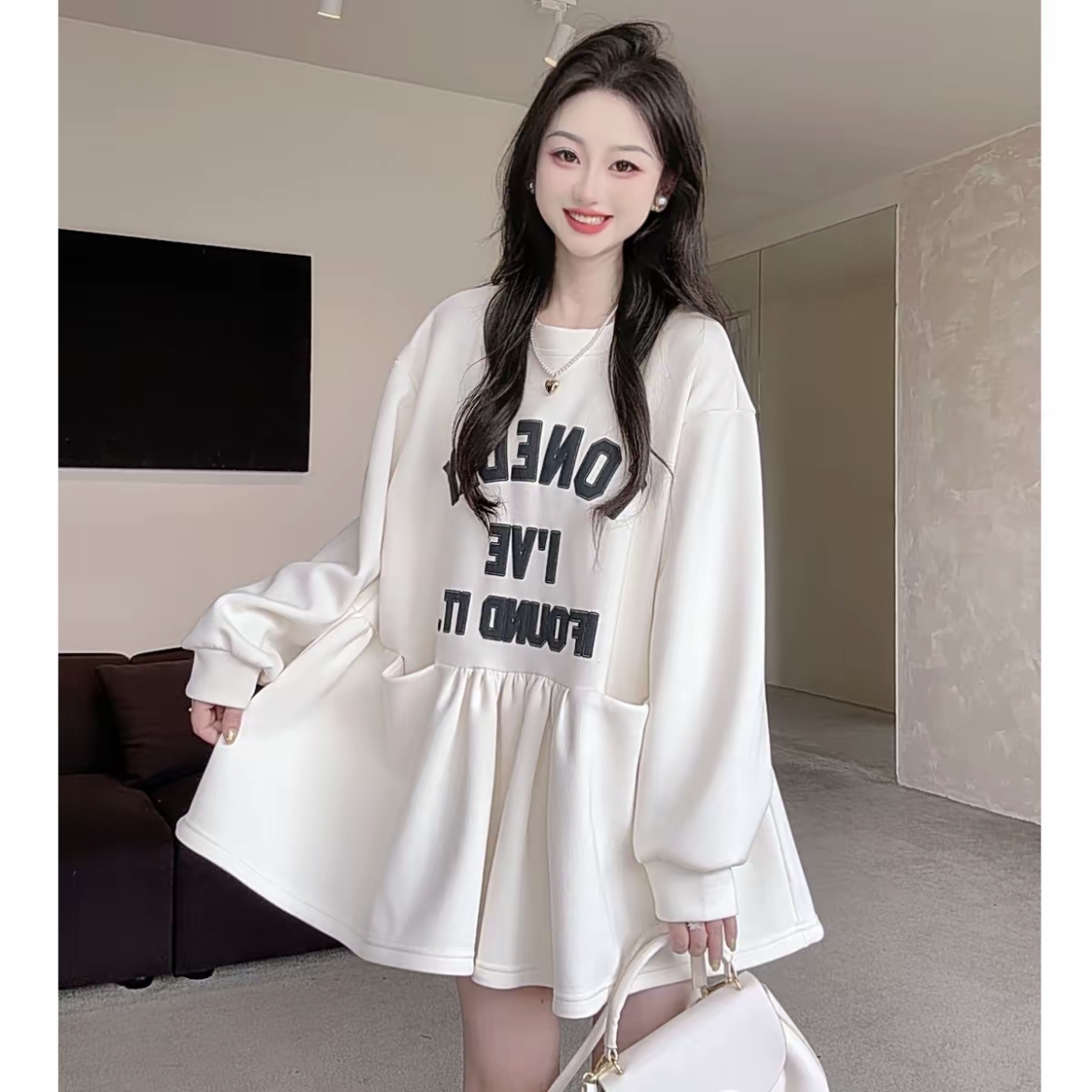 2025秋季新款洋氣減齡時尚原創拼接套頭顯瘦字母長袖衛衣裙